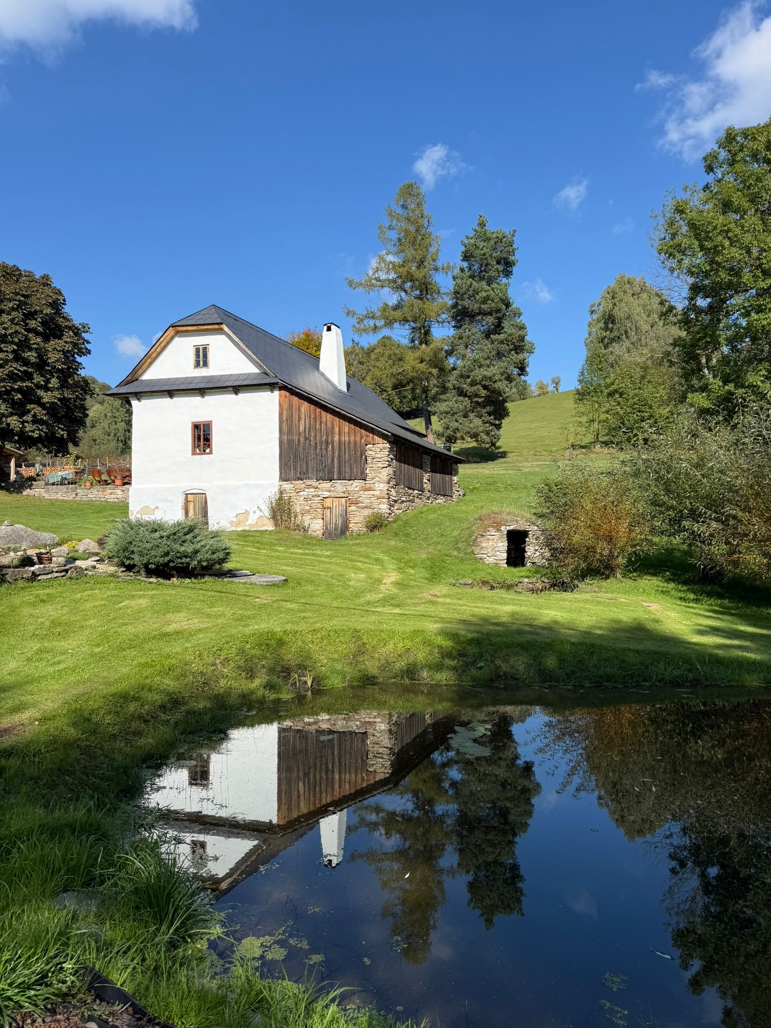 Už po příjezdu jsem ale cítila, že tady to půjde. Chalupa v Novém Jimramově na Vysočině má zvláštní klid – ten, který se nedá popsat, jen cítit. Lesy, ticho, čistý vzduch. Jakoby to místo říkalo: „Můžeš zpomalit.“